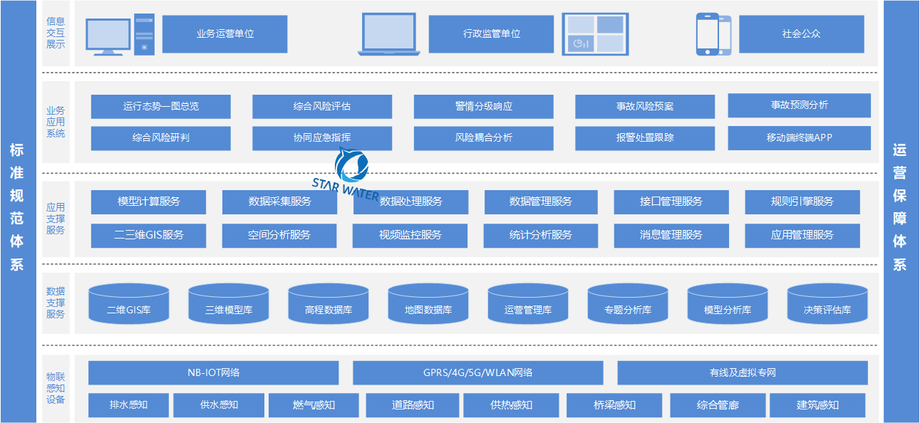 感知层是平台唯一数据来源,负责实时采集排水、燃气、供水、桥梁、热力的运行参数,是平台实现风险监测的基础前提。