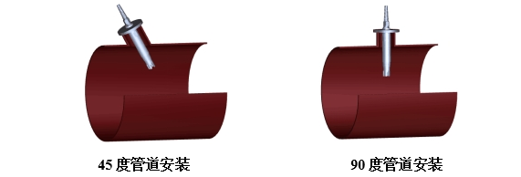 管道安装有两种方式,45度安装和90度安装,如图所示。