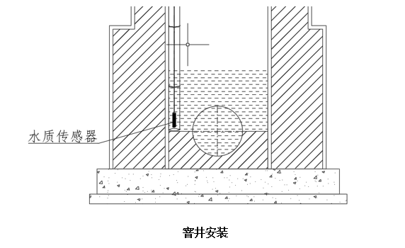 水箱安装时,需配一个固定支架,将其固定在箱盖上,如图所示。支架需根据现场具体情况设计,水箱开孔需保证传感器能够穿过该固定孔。